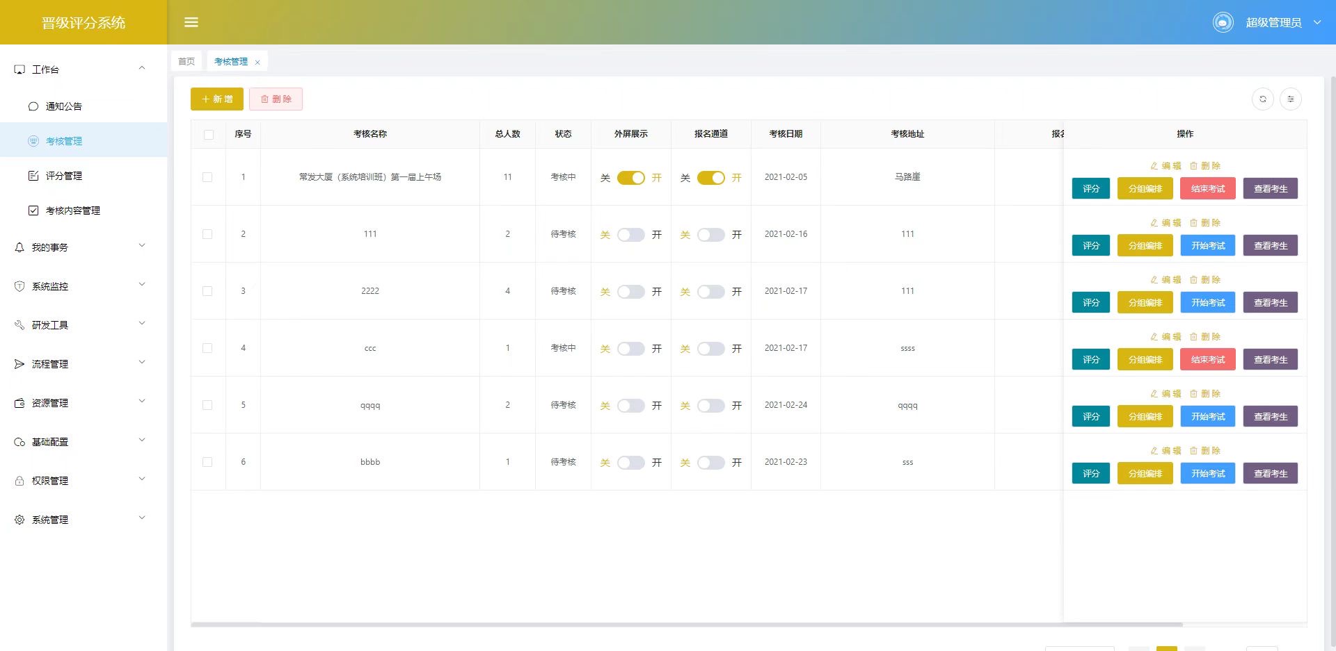 评分过程留痕: 记录每位考官的具体打分项和分数,可追溯。